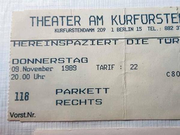 Tagesspiegel-Leserin Edda Hartmann hat es damals aufgehoben und ist jetzt – der 30. Jahrestag jenes Abends naht – wieder darauf gestoßen. Und noch ein Detail ist ihr aufgefallen, das dem Kuriosum quasi die Krone aufsetzt: Sie saß in Reihe 13, Sitz 8. Als wollte sich schon wieder eine im Hintergrund waltende Macht einen Jux machen und am Tag des Mauerfalls noch schnell mal an den des Mauerbaus erinnern, den 13. August 1961.