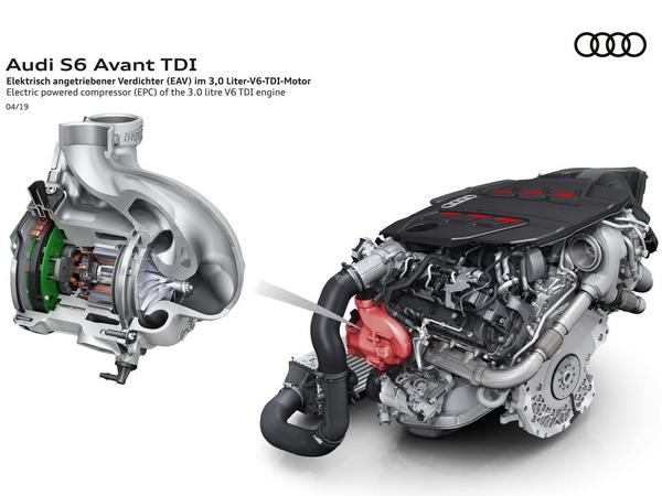 Mit dem EAV, dem „Elektrisch angetriebenen Verdichter“, einer Turbine von gerade mal 6,8 Zentimetern Durchmesser, nimmt Audi Abschied vom berüchtigten Turboloch. Das war die im Drehzahlkeller klaffende Lücke, bei der ein die Verbrennungsluft verdichtender und dadurch für mehr Wumm beim Gasgeben sorgender Turbolader mangels ausreichender Abgasmenge noch nicht recht funktionierte. Der EAV ist eine der Möglichkeiten, dieses Loch zu überbrücken, eine Art Bypass, um auch ohne Turbohilfe die zur Verbrennung des plötzlich im Überfluss vorhandenen Kraftstoffs nötige Luftmenge zu liefern – so lange, bis der Turbo eingreift und die kleine Hilfsturbine sich automatisch wieder ausschaltet. Audi hatte sie erstmals beim dicken SUV-Modell SQ7 TDI mit seinen V-8-Motor eingesetzt, nun kommen die Sechszylinder der S-Reihe und des SQ5, ebenfalls ein SUV, hinzu.