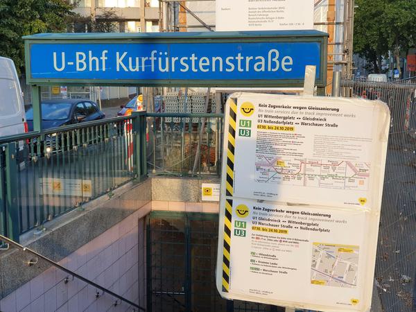 Noch eine Sperrung: Ab heute ist für zwei Wochen die Hochbahnstrecke der U1 und U3 am Gleisdreieck gesperrt. Bis 24. Oktober werden Schienen und Schwellen auf der Brücke über dem Park am Gleisdreieck ausgetauscht. Die U1 fährt in dieser Zeit nicht zwischen Gleisdreieck und Wittenbergplatz. Die U3 fährt nicht zwischen Nollendorfplatz und Warschauer Straße. Die Station Kurfürstenstraße wird also gar nicht angefahren. Fahrgäste können den Abschnitt mit der U2 über Bülowstraße umfahren, es heißt also Treppen steigen. Ebenfalls ab heute hält die U2 am Potsdamer Platz nicht in Fahrtrichtung Ruhleben. Fahrgäste sollen bis Gleisdreieck fahren und von dort wieder zurück.