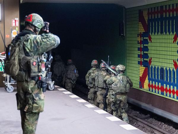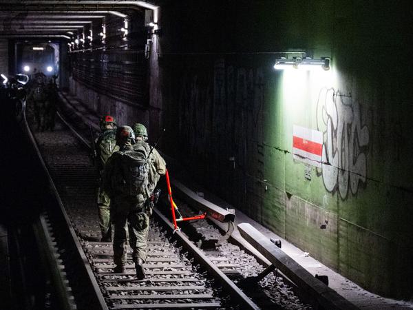 „Werden das hoffentlich nie einsetzen müssen“ : Mit dabei, wenn die Bundeswehr in der U-Bahn den Ernstfall probt