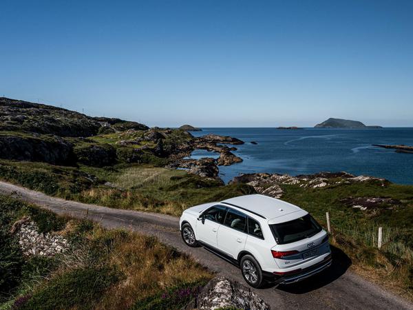 All das funktioniert problemlos bei Rechts- wie Linksverkehr. Sicherheitshalber waren dann aber doch rote Armbänder mit der Aufschrift „Follow Your Heart to the Left“ verteilt worden, als Audi kürzlich in kontinental gesteuerten Fahrzeugen zu Inseltestfahrten auf dem Ring of Kerry einlud, einem durch malerische bis wild zerklüftete Landschaften führenden Küstenrundkurs im Südwesten Irlands. Stellenweise ist die Straße so eng, dass Busse und Lastwagen ihn nur gegen den Uhrzeigersinn fahren dürfen, also ganz und gar nicht eine Strecke, auf der die volle Kraft eines Q7 ausprobiert werden könnte.