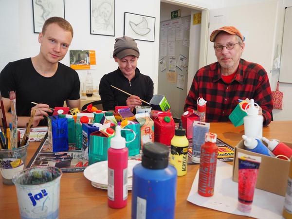 An der Brunnenstraße 145 in Mitte hat sich der Kiezladen der Volkssolidarität unterdessen in ein Maleratelier verwandelt. Hier werden halbierte Tetra Pak-Tüten von Saft und Milch gereinigt und mit Acrylfarbe kunterbunt bemalt. „Das sind alternative Recycling-Pflanzgefäße“, sagt Julian Rehbock aus Alt-Moabit, von Beruf Modedesigner. Als er die Tetra Pak-Aktion im Internet entdeckte, dachte er: „Das kriege ich auch noch hin.“