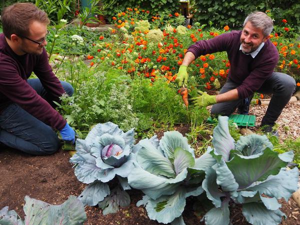 Nächste Station. 11 Uhr, die „Gärten der Sinne“ an der Wodanstraße 40 in Mahlsdorf. Wer würde am Rand einer solchen, eher unspektakulären Straße derartige Paradiese vermuten? Dicke Rotkohlkugeln, Sonnenblumen, Minze, Popcornmais, üppige Studentenblumen – was Gärtnern Freude macht, hier gedeiht es.