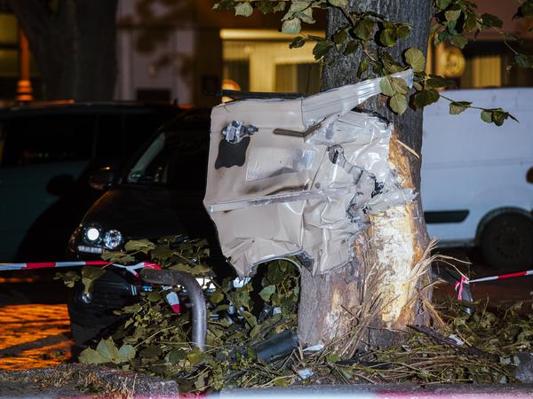 Ein junger Mann rast durch die Yorckstraße, verliert die Kontrolle über sein Fahrzeug und prallt gegen einen Baum. Womöglich stand er unter Drogen.