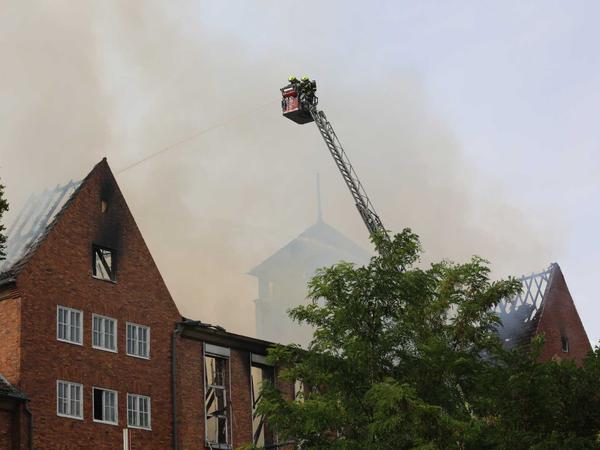 Die Löscharbeiten nach einem Brand am Alten Landtag in Potsdam sind beendet. Die Höhe des Schadens ist noch unklar. Am Samstagnachmittag war das Feuer ausgebrochen.