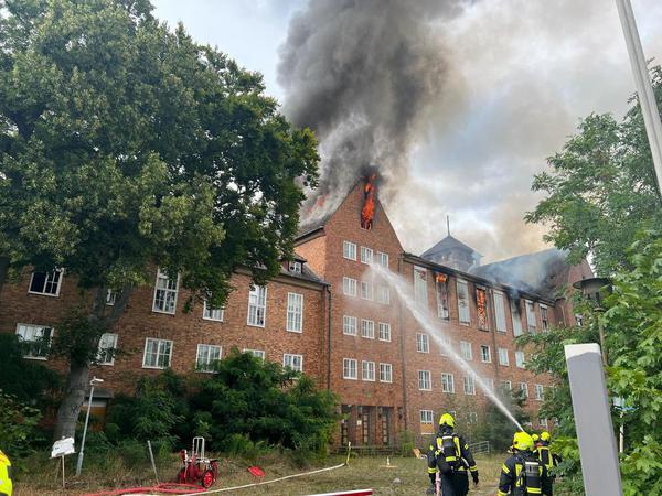 Polizei und Feuerwehr hatten zuvor von einem Großbrand berichtet. Der Dachstuhl des südlichen Seitenflügels, in dem sich der frühere Plenarsaal befindet, sei in Brand geraten und eingestürzt, sagte ein Sprecher der Regionalleitstelle Nordwest am frühen Abend. Angrenzende Bereiche wurden bei dem Einsturz in Mitleidenschaft gezogen, erklärte die Stadt. Ein Feuerwehrmann wurde bei dem Einsatz leicht verletzt. Die Polizei ermittelt wegen einer möglichen Brandstiftung.