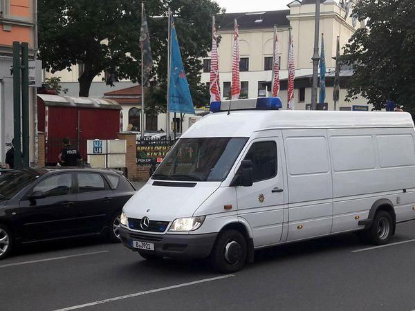 Nicht nur die U8 fährt normal, auch auf dem Hermannplatz und in der Hasenheide herrscht der gewohnte Trubel. Außer ein paar Fahrzeugen der Polizei ist von dem Einsatz an der Oberfläche nichts zu spüren. Auf dem Platz steht ein Wahlkampfstand der Linken. "Frieden", steht auf Plakaten, die Helfer rundherum befestigen.