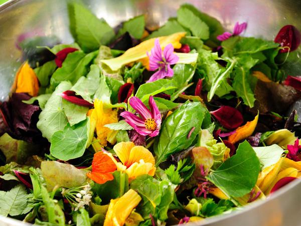 Was nicht auf der Arbeitsfläche steht, wird selbst geerntet – und zwar jetzt. Glückssache, was gerade wächst.