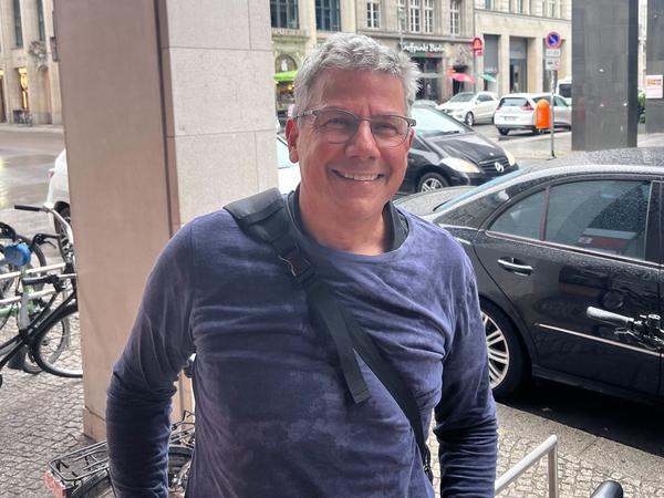 Selbst eine dadurch leerere Stadt wäre für sie nicht überzeugend. „Während Corona hat man doch gesehen, wie gespenstisch solche leeren Straßen sind. Das wäre gar nichts für mich“, sagt sie, dann kommt auch schon ihr Bus. Auf der Friedrichstraße schließt Stefan Merz gerade sein Fahrrad vor dem Kulturkaufhaus Dussmann an. Sein Helm und seine Brille sind noch nass vom Regen.