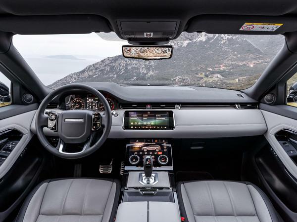 Also ab auf die platte Straße, hinein in den Berliner Berufsverkehr, einmal Falkensee und zurück, rund 35 Kilometer Innenstadt und ein bisschen Wald. Nicht gerade ideal, um die Fähigkeiten der zweiten Generation des Range Rover Evoque auszuprobieren, des neuesten, am 6. April in den Verkauf gehenden Produkts aus dem Oberklasse-Segment des britischen Herstellers Land Rover. Die 249 PS unter der Motorhaube sind immerhin zu ahnen, wird das Gaspedal mal versehentlich zu unsensibel bedient – sofort macht der Wagen einen Satz nach vorn. Aber dafür ist an den vielen Ampeln die Mild-Hybrid-Technik um so besser zu erleben, die dem neuen Evoque als ersten Schritt in Richtung E-Mobility verpasst wurde. Für sie braucht man keine Steckdose, vielmehr wird die Energie, die beim Bremsen oder Verzögern sonst verloren ginge, zurückgewonnen und in einen Akku im Unterboden eingespeist. Fährt der Wagen langsamer als 17 km/h und tritt der Fahrer auf die Bremse, schaltet sich der Verbrennungsmotor automatisch ab, und ein dort montierter Riemen-Starter-Generator kommt zum Einsatz, der ihn auch bei erneutem Anfahren und Beschleunigen unterstützt. Eine für den Evoque neue technische Finesse, deren genaue Funktionsweise den Durchschnittsfahrer nicht interessieren dürfte, das Ergebnis aber schon: Sechs Prozent weniger Spritverbrauch soll das bringen.