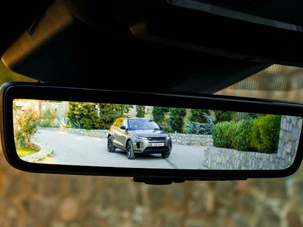 Beim Cruisen durch die Berliner Stadtlandschaft und später den Spandauer Forst kommen noch weitere vom Hersteller Land Rover besonders herausgestellte Neuheiten sehr viel besser zur Geltung als beim Rasen über Landstraßen und Autobahn. Zum Beispiel die Technik mit dem schönen Namen „ClearSight Smart View“: Durch einen Schalter am Innenrückspiegel wird eine Kamera in der Dachantenne angeknipst, und der Spiegel ist plötzlich ein Bildschirm mit erweitertem, nun sogar 50 Grad erfassenden Sichtfeld – sehr nützlich, wenn Gepäckstücke oder zu breit geratene Fond-Passagiere den Blick nach hinten stören. Und wenn wir jetzt anhielten, uns beim Einparken voller Sorge um die hübschen Felgen vorsichtig an den hohen Bordstein herantasteten oder sogar – aber wer macht das schon – mit dem schicken Evoque tatsächlich mal in den Modder abgelegener Pisten wagten, käme uns, ebenfalls optional, die „ClearSight Ground View“, die „durchsichtige Motorhaube“, zu Hilfe: aufs obere Touchscreen geschickte Kamerabilder, die einen 180-Grad-Blick unter den Vorderwagen erlauben.