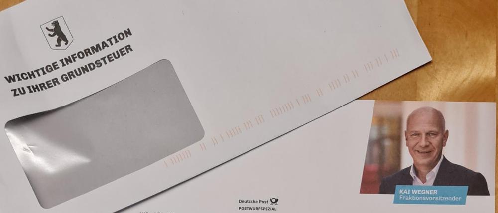 Wer den Brief öffnete, bekam jedoch kein Amtsschreiben zu Gesicht, sondern den Kopf von CDU-Fraktionschef Kai Wegner und der Forderung: „Entlastungen bei der Grundsteuer jetzt!“