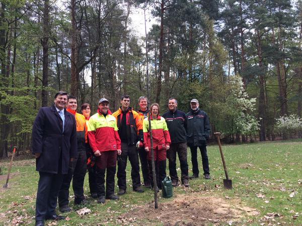 Normalerweise werden Bäume im Herbst gepflanzt. Doch angesichts des prominenten Besuchs macht die Forstverwaltung eine Ausnahme. „Der Senator kommt ja nicht jeden Tag“, sagt Karl-Heinz Marx, Leiter des Forstamts Tegel. Aber man sei ja auch relativ autark von der Verwaltung. Die rund 220 Mitarbeiter der städtischen Forstverwaltung sind mit 29.000 Hektar Waldfläche für etwa ein Fünftel der Fläche Berlins verantwortlich. „Außer Wien gibt es keine Metropole in Europa, die so viel Waldfläche hat wie Berlin“, freut sich Marx.