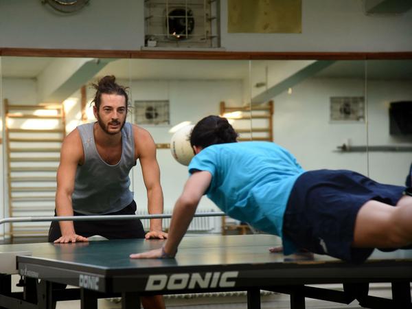 Unter Tischtennisspielern ist Headis hingegen nicht besonders beliebt, sich auf die Patten zu stellen, darauf herumturnen – „wir ziehen die Platten ganz schön in Mitleidenschaft“, sagt Nina Parzych.