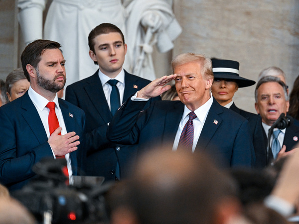 Donald Trump salutiert, nachdem er den Amtseid abgelegt hat. © REUTERS/Kenny Holston