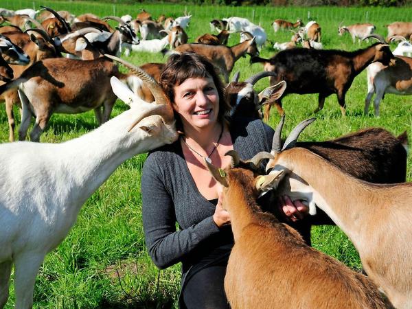 Ziegen können so putzig sein. Wenn Gela Angermann hinüberstiefelt zur Weide, die zu ihrem Öko-Gehöft Karolinenhof gehört, kommt die Herde, um die 140 Tiere, im Pulk angemeckert. Neugierig sind sie alle und verschmust. Geht Gela Angermann in die Hocke, kann sie sich vor Kuschelattacken kaum wehren, hat Ziegennasen im Gesicht, und Köpfchen mit Gehörn drücken sich in ihre Halsbeuge. Die Ziegenkäserei, in der die Milch der Tiere frisch verarbeitet wird, hat sie nach der Wende mit ihrem Mann aufgebaut, 2,5 Hektar Hoffläche gekauft, das Land von der Treuhand gepachtet. Ab 2000 wurden die Gebäude (um-)gebaut – für einen Hofladen, eine Gastronomieküche und das erste biozertifizierte „Wiesencafé“ Brandenburgs. Seit acht Jahren, seit dem Tod ihres Mannes, führt Gela Angermann den Ökohof mit Landwirtschaft, Käserei, Café und Gastronomie in Eigenregie mit Angestellten. Es gibt viel zu erleben: Im Januar, wenn die Zicklein geboren werden, schauen die Gäste mit in den Stall, und im Spätherbst beobachten sie die Kraniche, die sich im Linumer Luch sammeln. Auf den Freiflächen zwischen den Häusern stehen die Tische und Bänke des Freiluftcafés. An einem gut besuchten Tag schickt die Küche bis zu 150 Essen plus Kaffee und Kuchen. Gela Angermann kennt viele Gäste. „Da erlebe ich jetzt schon die nächste Generation.“