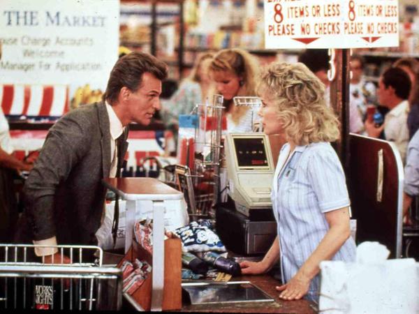 Nun muss der Gegensatz zum Alltag nicht notwendig etwas Negatives, Bedrohliches sein. Mit Schönem lassen sich Billy Wilders Vorgaben ebenso umsetzen, zum Beispiel mit der Liebe. Ja, man kann ohne weiteres behaupten, der Supermarkt im Film, dieser merkantile Mikrokosmos, in dem sich der soziale Makrokosmos der ganzen Gesellschaft spiegelt, ist nicht bloß ein Ort des Leids, sondern ebenso oft der seines Gegenparts, der Freude. Selbst in einem Thriller wie Nicolas Winding Refns „Drive“ (2011) bahnen sich zarte Bande zwischen dem von Ryan Gosling gespielten Fluchtwagenfahrer und seiner Nachbarin Irene (Carey Mulligan) auf dem Parkplatz eines Supermarkts an, als ihr Wagen im richtigen Augenblick einen Motorschaden erleidet und er als Kfz-Kundiger zu Hilfe eilen kann. Anne Parillaud, staatlich geprüfte Auftragsmörderin in Luc Bessons „Nikita“ (1990), ist etwas forscher und fragt den von ihr angehimmelten Kassierer Marco (Jean-Hugues Anglade) kurzerhand, wann er denn Feierabend habe. Sogar geradezu märchenhafte Aschenputtel-Geschichten werden möglich, etwa in der Komödie „The Secret Life of Kathy McCormick“ (1988), in der die von Barbara Eden gespielte Titelfigur, eine einfache Angestellte, durch allerlei Missverständnisse Aufnahme in die lokale High Society findet. Niemand ahnt, dass sie, als sie von The Market als ihrem Arbeitsplatz erzählt, nicht den Stock Market meint.