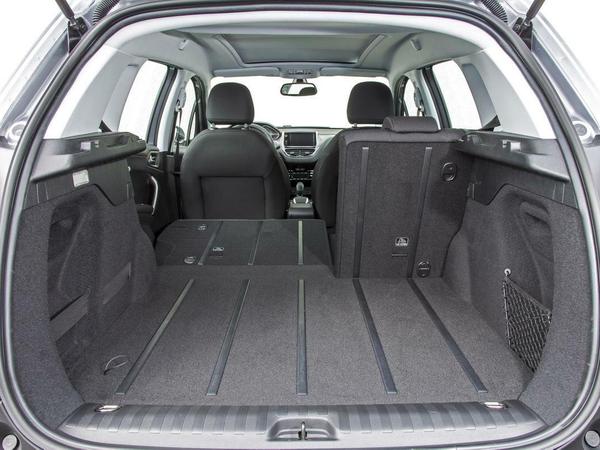 Im Kofferraum bietet der Peugeot 2008 ein durchschnittliches Ladevolumen von 360 Liter im Normalzustand. Das ist daher eher weniger beachtlich, weil das Modell auch den einstigen Kleinwagen-Kombi 207 SW ersetzen soll. Das schafft er von den Werten her gerade so, denn bei umgelegter Rückbank kommt er auf 1194 Liter. Ein Peugeot 208 liegt da gerade mal 120 Liter darunter. Dafür stören im Heck keine Radkästen und in den Seiten finden sich zusätzliche Taschen für Kleinzeug. Das ist eben einer der konstruktionsbedingten Vorteile der SUVs.