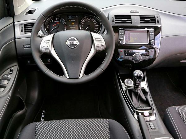 Der stärkste Pulsar tritt fast so unauffällig auf wie die 75 PS schwächere Version. Dieser Logik entsprechend verzichtet der 190-PS- Pulsar bewusst auf Sportfahrwerk, Sportsitze und Sportoptik. Die Unterschiede zum Butter-und-Brot-Modell sind geringer als bei den anderen sportlich angehauchten Kompakten: Außen zieren den Nissan spezielle 18-Zoll-Räder, schwarze Einfassungen der serienmäßigen LED-Scheinwerfer. Innen Carbon-Zierteile und weiße Nähte an Lederlenkrad und Schaltknauf.