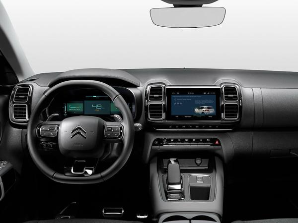 Der C5 Aircross präsentiert sich zwischen obligatorischer Dachreling und 230 Millimeter Bodenfreiheit enorm geräumig und variabel. Zum formidablen Dämpfungsverhalten des C5Aircross auf Strecken jenseits des glatten Asphalts tragen auch die hervorragenden „advanced comfort“ Sitze bei. Am Armaturenbrett hat Citroen extra für den Hybrid das volldigitale Kombigerät mit 12-Zoll-Bildschirm überm Lenkrad neu gestaltet. Das Ergebnis ist ein sehr klar strukturiertes und stylisches Anzeigeinstrument, bei dem sowohl Reichweite und Ladezustand als auch die Verkehrszeichenerkennung und Streckenführungs-Karte eingespielt werden. Beim querliegenden Zehn-Zoll-Touchscreen über der Mittelkonsole reicht eine Berührung aus, um sämtliche Fahrzeugparameter, die Media-Funktionen, das umfangreiche Konnektivitätsangebot, die Klimaanlage oder die Navigation zu steuern. Auch das Smartphone, das in der Ladeschale induktiv aufgeladen wird, kann über den Touchscreen bedient werden.