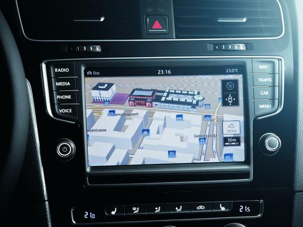 Die nun weiß hinterleuchteten Instrumente könnten auch einen viermal so teuren Audi A8 zieren. Das Handschuhfach ist mit aufwendig verlegtem Filz ausgeschlagen, damit nichts klappert. Ebenso fein ausgekleidet sind die riesigen Türfächer für 1,5-Liter-Flaschen. Knackscharf wie ein iPhone bildet das Farbdisplay zwischen Tacho und Drehzahlmesser die Infos ab. Gut, wir sitzen im Topmodell Highline. Doch selbst hier verlangt VW für das brillante Display noch heftige 150 Euro Aufpreis. Das riesige Navi (2315 Euro Aufpreis!), das gleichzeitig Infozentrale für alles Mögliche ist, lässt sich so intuitiv wie ein iPhone bedienen. Es bietet, wenn entsprechend viele Fahrassistenzsysteme geordert wurden, reichlich Raum für den Spieltrieb von Frau oder Mann. Wohl auch deshalb besitzt die Bedienungsanleitung nun 412 statt 363 Seiten. Muss das sein?