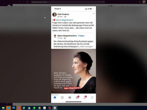 An vorderster Front findet sich die Linken-Politikerin Sahra Wagenknecht. Auf ihrem Facebook-Account fordert sie die Bundesregierung auf, statt hundert Milliarden zusätzlich für Waffen und Krieg auszugeben, müsse sie endlich etwas gegen explodierende Preise bei Sprit, Gas und Heizöl tun.