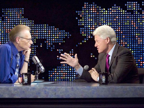 "Larry King live". Larry King wurde mit seiner Show, die von 1985 bis 2010 bei CNN zu sehen war, weltweit bekannt. Sein praktisch immer gleiches Outfit mit Hornbrille, Hemd und Hosenträgern zum Markenzeichen.