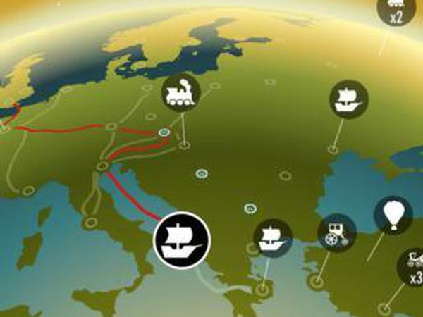 "80 Days" erzählt die Reise aus Passepartouts Sicht, der seinem ehrgeizigen, aber oft auch törichten Herrn den Rücken freihält. Die Macher des Spiels halten sich nicht sklavisch an die Buchvorlage, sondern reichern die Handlung um Themen wie Kriegsgefahr, Spionage oder eine Roboter-Revolution in Russland an. Als interaktiver Roman funktioniert das Ganze ausgezeichnet - auch deshalb, weil die Schilderungen und Dialoge brillant geschrieben sind. "80 Days" vertraut dabei auf die Vorstellungskraft der Spieler: Geräusche und stilisierte Zeichnungen ergänzen die ausschließlich englischsprachigen Texte. Die Reiseroute erscheint als rote Linie auf einem Globus - so behält man jederzeit den Überblick.