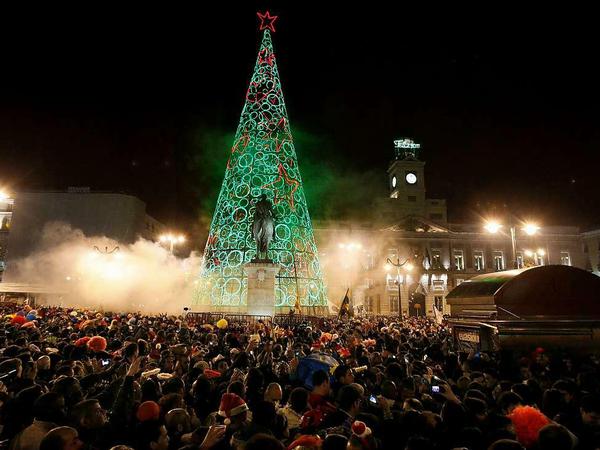 Ohne Weintrauben geht nichts an diesem Abend. Zwölf Stück pro Person, möglichst groß und prall, die kernlosen sind was für Omas. Kurz vor Mitternacht bekommt jeder seine abgezählten Trauben in die Hand, dann wird der Livestream des spanischen Senders La 1 eingeschaltet, der die große Silvesterparty von der Puerta del Sol in Madrid überträgt, wo jedes Jahr Tausende von Menschen feiern. Im Scheinwerferlicht: die Uhr im Turm des alten Postgebäudes. Um kurz vor zwölf senkt sich hier die große Kugel, die wie die größte Traube der Welt aussieht.