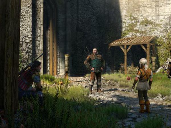 Die Sparringsrunde im Burggarten wird jäh unterbrochen, als die Wilde Jagd auftaucht. Diese schier unbesiegbare Armee von Geisterreitern trieb schon in den ersten beiden Serienteilen ihr Unwesen, diesmal verschleppt sie offenbar Ciri aus Kaer Morhen. Hier deutet sich bereits an, dass der Figur Ciri im weiteren Verlauf noch besondere Bedeutung zukommen wird - laut Entwicklerstudio können Spieler sogar hin und wieder ihre Rolle übernehmen.Hier allerdings endet Geralts Traum auch schon. Der Hexer erwacht unter einem Baum und stellt fest, dass er gerade mit Vesemir in Temerien unterwegs ist und sich auf der Suche nach Yennefer befindet. Die Hexer befragen die Bevölkerung nach ihrem Verbleib, erhalten aber nur bruchstückhafte Informationen. Unterwegs kommt es auch gleich zu einer unschönen Begegnung mit mehreren Ghulen, fleischfressenden Monstern, die sich auf Geralt und Vesemir stürzen, aber schnell besiegt sind. Die Kampfgefährten brechen nun in Richtung des Dorfes Weißgarten auf, um weitere Informationen über Yennefer zu erhalten. Geralts treues Pferd "Plötze" ist erneut mit von der Partie, mit einem Pfiff kann er es jederzeit zu sich rufen. Auf dem Weg nach Weißgarten zeigt sich die Landschaft von "Wild Hunt" in voller Pracht: Geralt und Vesemir reiten auf gewundenen Pfaden durch Wiesen und Laubwälder, die Baumwipfel schwanken leicht im auffrischenden Wind, immer wieder bricht die Sonne durch dramatisch aufgetürmte Wolken. Beim Wetter und bei den Tag-Nacht-Übergängen hat sich CD Projekt besondere Mühe gegeben, im Wechselspiel mit der Natur entsteht so eine Vielzahl von Stimmungen - mal tobt ein Gewittersturm über das Land und lässt die Menschen in den Häusern Schutz suchen, mal liegt die Sonne friedlich auf goldgelben Weizenfeldern. Diese Pracht hat allerdings auch ihren Preis: Die Grafik setzt hohe Anforderungen an die Spiele-Hardware.Riesige Spielwelt, bedeutende Entscheidungen