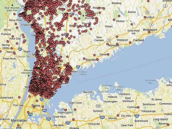 Klickt man auf die roten Punkte auf der Karte von Westchester County oder auf die blauen und lilafarbenen Punkte auf der Karte von Rockland County poppt jeweils der Name eines Waffenbesitzers auf, samt Adresse. Die Redaktion hat die Informationen nach dem Massaker in der Sandy-Hook-Grundschule in Newtown im benachbarten Connecticut auf Grundlage erteilter Waffenscheine unter der Überschrift „Wo sind die Waffenscheinbesitzer in Ihrer Nachbarschaft?“ zusammengestellt. Alle Daten seien nach dem Informationsfreiheitsgesetz öffentlich zugänglich, versichert die Redaktion. Und bezieht sich auf einen Experten, der auch die Veröffentlichung für rechtens halte. Wohl um zu zeigen, dass man sich nicht für die besseren Bürger hält, gibt der Artikel Informationen preis zu den Waffen, die der Autor selbst besitzt: Eine Smith & Wesson 686.357 Magnum.