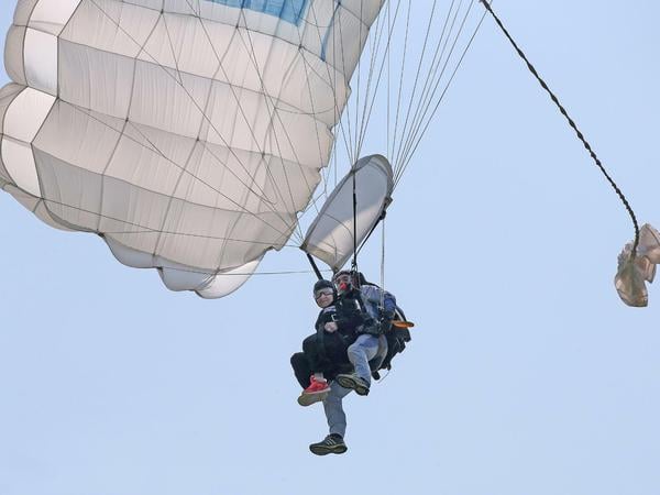 Sie ist so alt wie die englische Königin - deshalb widmete Johanna Quaas aus Halle ihren ersten Fallschirmsprung der Queen.