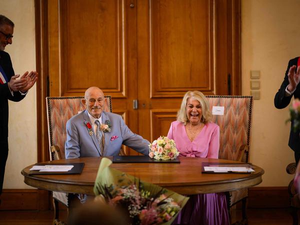 Blieb noch eine entscheidende Frage: Wohin geht es in die Flitterwochen? Nach Paris, so Harold Terens. Man werde das berühmte Variete Moulin Rouge besuchen. Und er wolle eine alte Ex-Freundin wiedersehen: die Mona Lisa. Die Wahl des Reiseziels hatte vielleicht auch einen ganz praktischen Grund. Bereits am Abend wurde das Paar im Pariser Elysee-Palast erwartet - zu einem Diner mit Frankreichs Präsident Emmanuel Macron und dem Präsidenten der Vereinigten Staaten, Joe Biden. Von den 120.000 noch lebenden US-amerikanischen Veteranen des Zweiten Weltkriegs wird Harold Terens an diesem Samstag vermutlich der glücklichste gewesen sein.