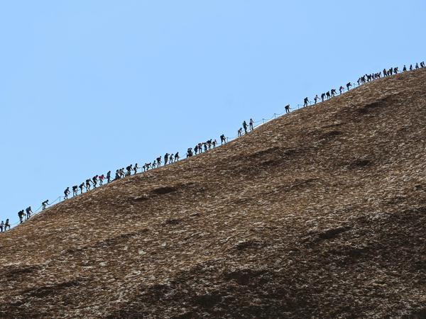 An Australiens Wahrzeichen Uluru gilt jetzt auf Bitten der Ureinwohner ein Kletterverbot. Zuvor gab es noch einmal großen Andrang.