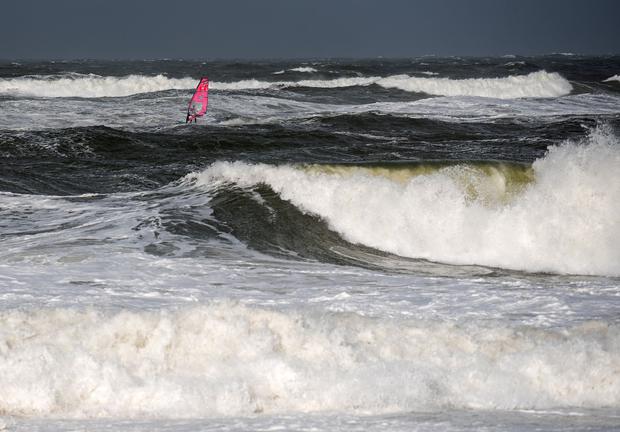 Für Windsurfer bot das Wetter offenbar gute Bedingungen. Bilder zeigen, wie sich einige Sportler auf der Nordseeinsel Sylt trotz des Unwetters ins Meer wagten.