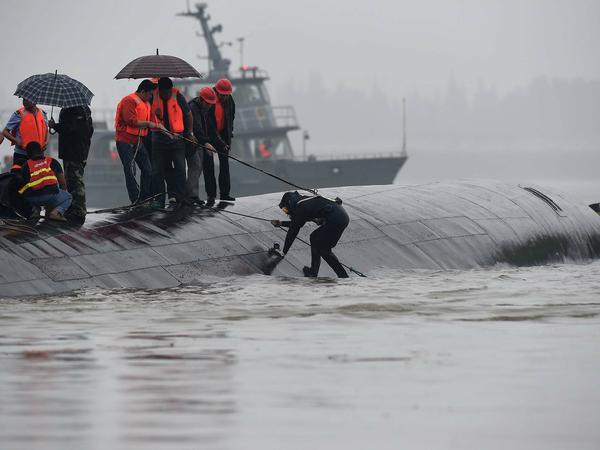 „Wenn es nicht so schnell gegangen wäre, hätten eine Menge Leute gerettet werden können“, glaubt Zhang Hui, auch weil es überall Schwimmwesten gegeben habe. Von dem 76 Meter langen Schiff ragten nur der Kiel und halb die Schiffsschraube sowie das Ruder aus dem Wasser. Über die genaue Zahl der Menschen an Bord gab es widersprüchliche Angaben. Nachdem anfangs von 458 Menschen an Bord die Rede war, sprachen Staatsmedien später nur noch von 456. Davon seien 405 Touristen gewesen - meist zwischen 60 und 80 Jahre alt. Mehr als 3000 Polizisten, Soldaten und Helfer sowie mehr als 30 Schiffe und mehr als 100 kleinere Boote waren im Einsatz. Allein die paramilitärische Polizei schickte mehr als tausend Soldaten, die mit 40 Schlauchbooten bei den Bergungsarbeiten helfen sollen.