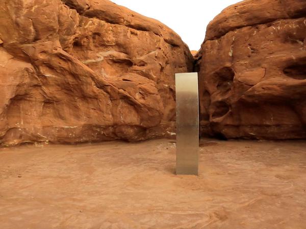 Eigentlich ist es ein irres Ding. Mitten in der Wüste von Utah steht eine spiegelglatte Metallstele – seit vier Jahren, wie sich mit Google-Earth-Bildern nachweisen ließ. Erst Ende November ist sie zufällig entdeckt worden. Ranger stießen bei einer Schafzählung vom Hubschrauber aus auf das dreieinhalb Meter hohe Objekt, errichtet zwischen den für die Region charakteristischen roten Felsen.