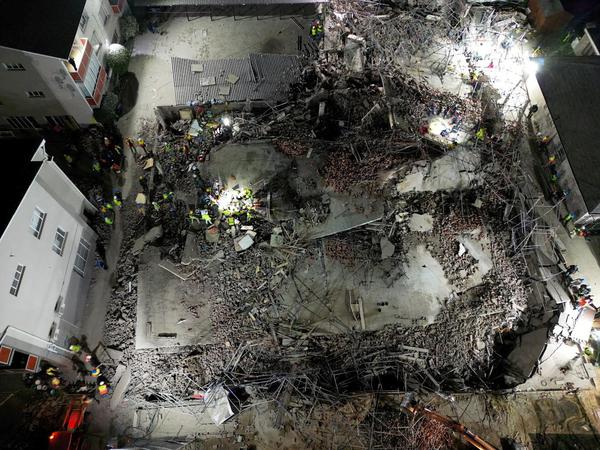 Rettungsteams suchten die Nacht hindurch und am Dienstagmorgen unterstützt von Spürhunden nach den Verschütteten. Ein Sprecher der Hilfsorganisation Gift of the Givers berichtete, Helfern sei es gelungen, Verbindung mit einigen der unter den Schuttmassen festsitzenden Menschen aufzunehmen.