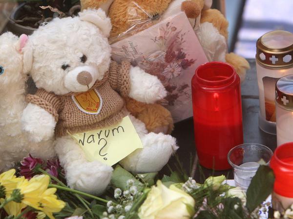 Am Eingang zum Bahnsteig stehen Grablichter, liegen Blumen und Kuscheltiere. Ein Teddybär hält einen handgeschriebenen Zettel mit der Frage des Tages: „Warum?“ Warum musste der kleine Junge am Montag sterben? Wie konnte es passieren, dass der Achtjährige vor den einfahrenden Zug gestoßen wurde? Was ging in dem Täter vor? Antworten hat am Dienstag am Frankfurter Hauptbahnhof niemand.