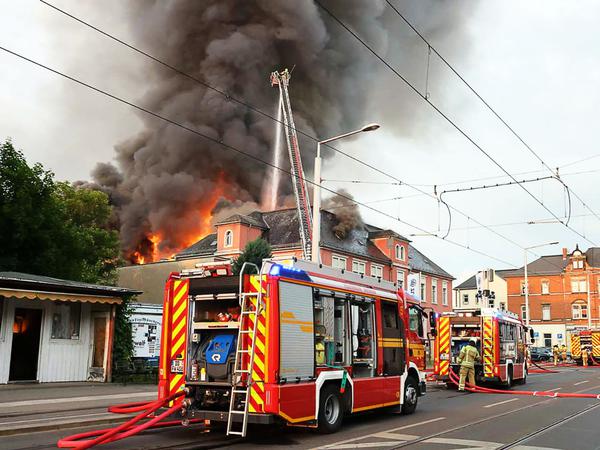 Die Feuerwehr hatte in Dresden schon am Freitagmittag einen Brand mit starker Rauchentwicklung in einem unbenutzten Gebäude bekämpft. Das Feuer war in einem leeren Bahnhofsgebäude in der Dresdner Neustadt ausgebrochen. Weil dieses stark zugewuchert und einsturzgefährdet ist, konnte der Brand nur von außen bekämpft werden, wie ein Feuerwehrsprecher mitteilte.
