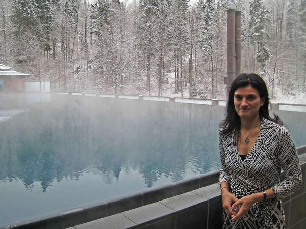 Nun also bietet die oberbayerische Alpenwelt die Kulisse. Das Schlosshotel Elmau, 1008 Meter hoch gelegen, ist umgeben von den Bergen. Von der Straße aus sieht man diese mächtige Anlage, ursprünglich erbaut in den Jahren 1914 bis 1916. Es ist ein Luxushotel an einem völlig abgelegenen Flecken, wie es luxuriöser kaum sein kann. Im Teesaal prasselt das Kaminfeuer, während Dalia Banerjee von dem verheerenden Brand erzählt, der im Jahr 2005 zwei Drittel der denkmalgeschützten Anlage zerstört hatte.