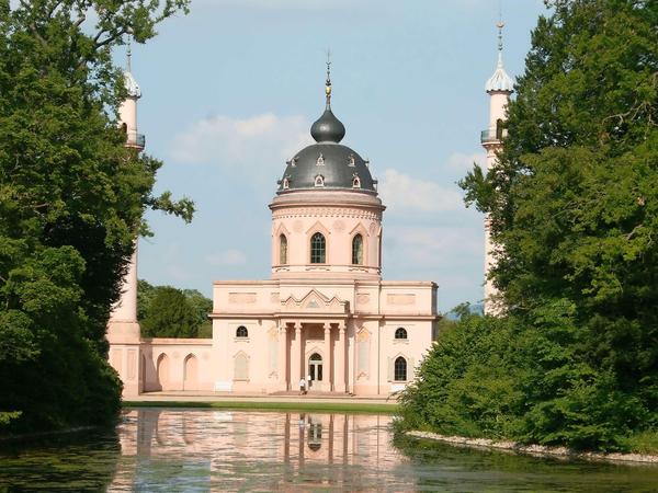 De Pigage hatte diesen Türkischen Garten mit Moschee Ende des 18. Jahrhunderts geplant. Es ist kein Gotteshaus im klassischen Sinn, sondern eine Kulisse mit durchaus verständnisfördernder pädagogischer Absicht. Die Pavillons und der Zentralbau sind mit Sinnsprüchen in arabischer Schrift und deutscher Übersetzung ausgestattet, Sätze, die jeder, gleich welcher Religion, unterschreiben kann: „Es gibt keine Gottheit außer Gott“ oder „Lobpreise Gott und bitte ihn um Vergebung. Er ist gnädig.“ Auch das Innere des Kuppelbaus ist prächtig geschmückt und mit Versen verziert. Ein verzauberter Ort, der einen an Lessing und „Nathan den Weisen“ erinnert, ein Ort, an dem Einflüsse der Kulturen verschmelzen.