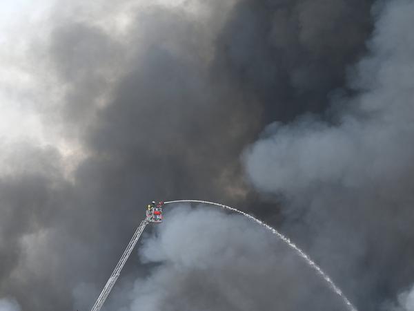 „Das ist ein wirklich außergewöhnlicher, schwieriger Einsatz“, sagte ein Feuerwehrsprecher vom Einsatzort. Er ging davon aus, dass die Löscharbeiten, an denen rund 210 Einsatzkräfte beteiligt waren, noch den ganzen Tag andauern.
