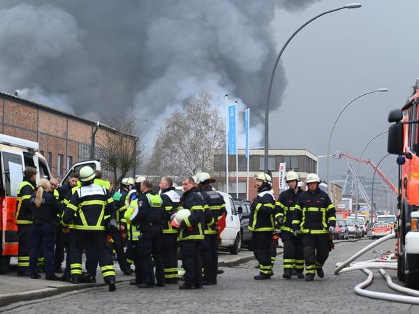 Das Feuer war am frühen Sonntagmorgen in einer Lagerhalle ausgebrochen und hatte weitere Hallen erfasst. Dabei entstand eine riesige Rauchwolke, die durch den Nordost-Wind stadteinwärts gezogen war und sich inzwischen weitgehend aufgelöst hat. Verletzt wurde nach ersten Erkenntnissen niemand.