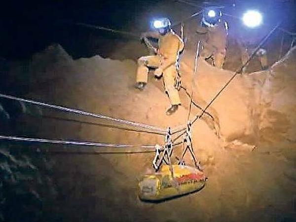 In der Riesending-Höhle haben die Rettungskräfte den verunglückten Johann Westhauser schon fast bis zum letzten Biwak gebracht. Nur noch gute 400 Meter trennen ihn offenbar vom Tageslicht.