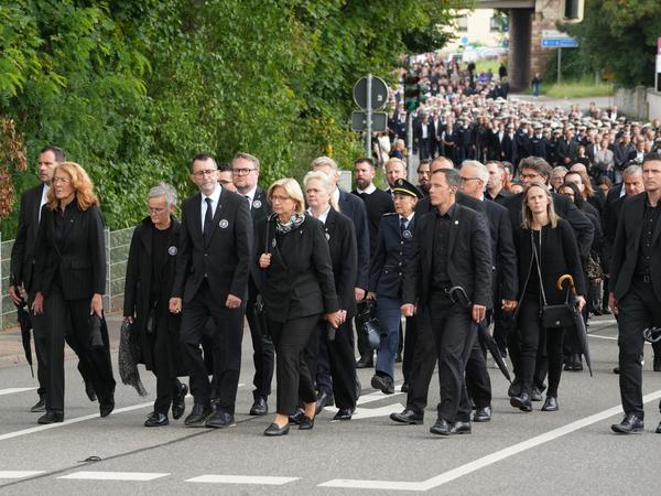 Die Tat hatte bundesweit Entsetzen ausgelöst. Die Trauerfeier war nicht öffentlich, wurde aber in ein eingerichtetes Medienzentrum übertragen.