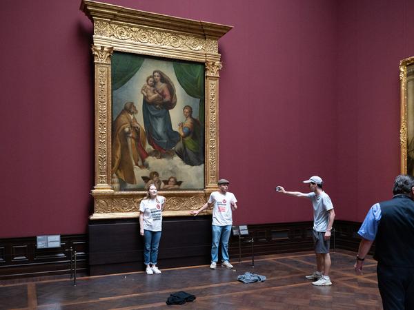 Auch in Deutschland wurden Kunstwerke zum Ziel. In Dresden klebten sich im August 2022 eine junge Frau und ein junger Mann am Rahmen des berühmten Altargemäldes „Sixtinische Madonna“ in der Gemäldegalerie Alte Meister Dresden fest.