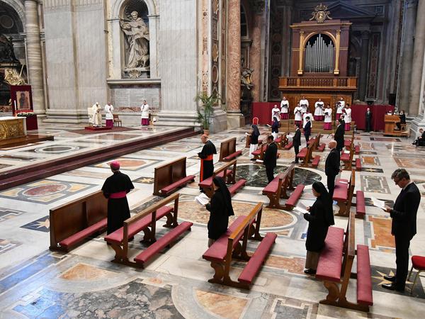 Im leeren Petersdom eröffnet Papst Franziskus die Feiern der Kar- und Ostertage. Die Messe am Gründonnerstag findet fast ohne Teilnehmer statt.