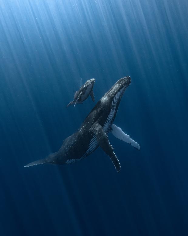 Eine Buckelwalmutter begleitet ihr Kalb am frühen Morgen zum ersten Atemzug an die Oberfläche. Laut der Jury eine „herzerwärmende Interaktion zwischen Mutter und Baby, in einer perfekt abgestimmten Pose der beiden majestätischen Tiere“.