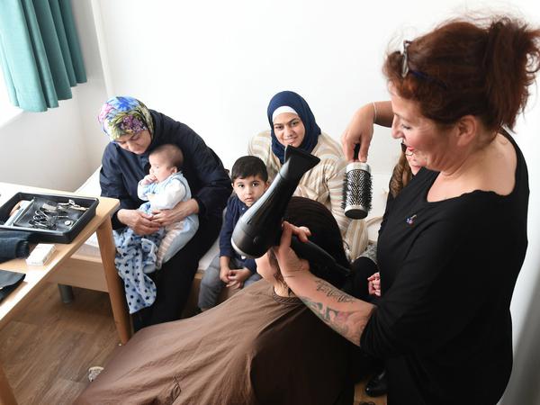 Schwarze Haare kringeln sich auf dem Boden. Ganz still sitzt die junge Syrerin auf dem Stuhl. Die Friseurin zückt die Schere und wieder gleitet eine lange Strähne nach unten. Für die 28-Jährige ist es der erste Haarschnitt, seit sie nach Deutschland geflüchtet ist - ein Einschnitt, der sich nun auch auf ihrem Kopf widerspiegelt. „Ich fühle mich nicht so wohl“, sagt sie. „Ich wollte eine Veränderung, einen neuen Look.“ An diesem Tag trennt sie sich von ihren langen Haaren. Als die Friseurin Susanne Toraman fertig ist, umspielt ein Pagenkopf das Gesicht der jungen Frau. Ihre beiden kleinen Kinder und zwei andere Flüchtlingsfrauen schauen der Verwandlung gespannt zu.